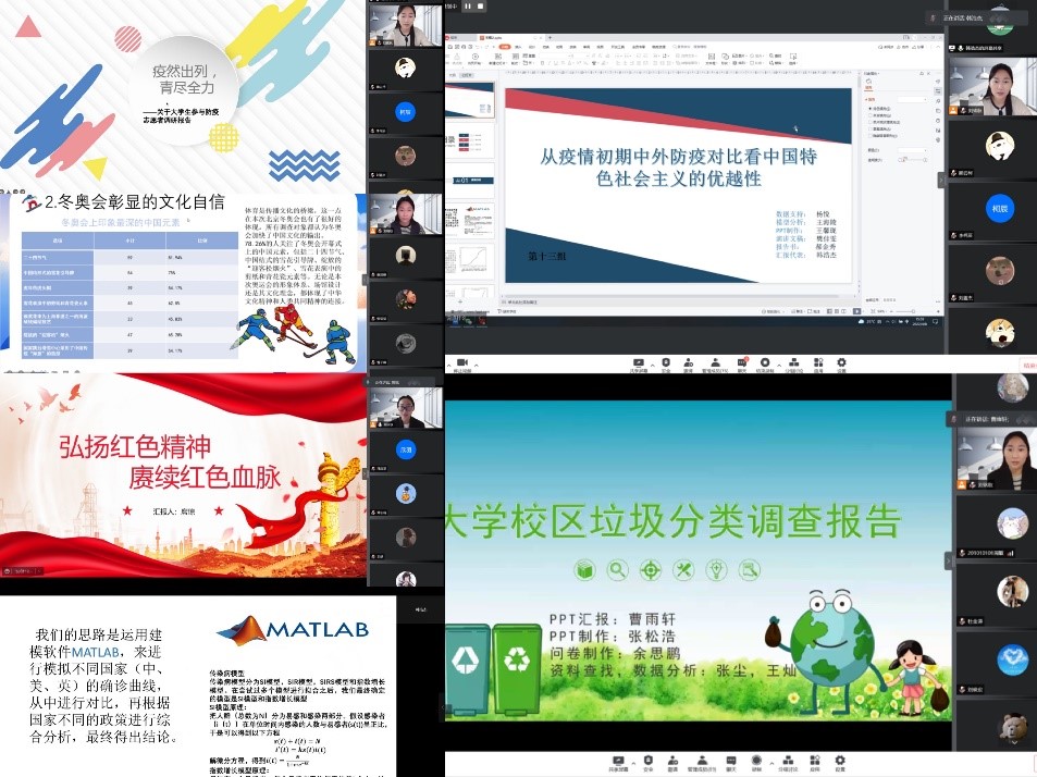 线上教学进行时,“疫”起奋发向未来,为有效应对新一轮新冠疫情,3月12日起学校全面切换为“在线教学模式”,对此beat365官方网站高度重视,针对思政课的教学特点和实际情况,学院层面、教研室层面、教师层面等“两级三层”齐发力,切实做好统筹领导、组织落实和自主探索,多维度保障“云端”教学工作,积极推进在线思政课。 学院层面精心部署,在线教学推进有力有序 思政课具有选课学生多、覆盖面广的特点,前8周涉及本科生思政课教学班级就有182个,学生人次超过12000人,如何有效开展线上教学来落实立德树人根本任务对于beat365官方网站教学工作是一个不小的挑战。接到学校启动在线教学通知后,beat365官方网站第一时间做好部署安排,紧急召开线上全院大会做好思想动员,指明思政课在线教学推进原则,即要切实强化政治站位,筑牢意识形态底线,充分发挥思政课对于学生价值引领作用,在原有在线教学工作推进基础上,充分发挥学院自身特色,有效运用在线教学平台功能,力求线上课堂授课生动、形式多样、互动高效,切实帮助学生在校封闭期间学习成长。3月18日,在习近平总书记在学校思政课教师座谈会发表重要讲话三周年之际,beat365官方网站召开“‘大思政课’善用之:提升新时代高校思政课质量”专题研讨会,结合当前线上教学进行专题研讨,各老师积极交流在线教学的心得体会和困惑,邀请资深专家点评指导,有力促进思政课在线教学工作展开。 学院层面还进一步细化思政课教学管理,每天做好在线教学提醒,确保教师工作不掉线。定期召开教研室主任会议,收集大家对线上教学的意见和建议,了解线上教学过程中存在的困难和问题,共同探讨相应的解决方案。学院在线教学专项工作小组成员每周随机开展在线督导检查,及时查找、改进问题,不断提升在线教学课堂质量。