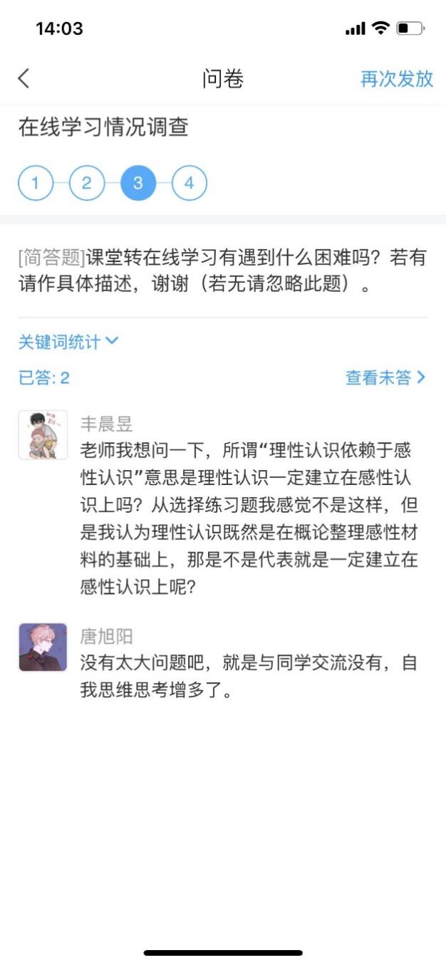“‘大思政课’善用之:提升新时代高校思政课质量”教学研讨会 教研室层面措施得力,在线教学组织有条有理 思政课教学内容多、价值引领性强,如何根据课程性质和特点有效做好在线教学并非易事,需要教研室层面发挥协同组织作用。教研室作为各门思政课在线教学方案设计及其实施的基本单元,多次召开线上集体备课会,调整和完善原有教学计划安排,切实为在线教学提供组织保障。马克思主义基本原理教研室开展线上思政课教学具有一定的基础,教研室成员已完成30个教学视频录制,2021-2022年秋季学期完成线上线下混合式试点,此次在线教学除了发挥自身特色资源外,积极拓展选用首届全国高校思政课教学展示视频、习近平重要讲话数据库等供教师选用。思想道德与法治教研室在“教学组织有序”、“教学管理严格”、“师生互动高效”三项原则的基础上,教研室成员群策群力、互帮互助,精挑细选线上教学视频资料,同时科学调整教学内容,将课程的法律部分更加适合网课的内容调整到前面来讲,体现课程教学的灵活性。中国近现代史纲教研室为增强教学互动性,以超星平台为依托,教师均配置了腾讯会议进行互动,实现课程讲述、解析答疑、作业练习等环节有效衔接。毛泽东思想和中国特色社会主义思想概论教研室及时加强青年教师在线教学技术操作辅导,切实拓展在线教学资源,教师们互相分享教学资源,合力推进在线教学实施。形势与政策教研室课堂教学突出主题性、突出时效性、突出互动性,合理设置疫情防控内容融入相关教学专题,如世界主要国家应对举措及其效果,深入阐析2022年政府工作报告关于在防疫抗疫中努力实现经济社会预期发展目标的内容,通过社会现实问题来实现对学生的引导。 马克思主义基本原理教研室录制的特色教学视频 教研室教学资料共享 教师层面各显神通,在线教学互动有声有色 在线教学最终要落实到教师讲课上来,在网络条件下,如何做好实时互动,随时解决学生听课中遇到的问题,考验着马院教师的智慧。思政课教师“各显神通”,大力加强学习互鉴,根据自身实际情况,切实抓好课前准备、课中讲授、课后反馈等环节,创新探索在线教学的有效方式。中国近现代史纲要李天星老师表示线上课程应当根据网络优势加强教学设计,注重问题导向,提前设置高阶性、开放性的讨论题目,教学内容紧密围绕新教材不脱纲,有机融入新表述不模糊,及时关注新变化不滞后,精心打造教学内容保障在线教学质量。毛泽东思想和中国特色社会主义思想概论课程刘铭秋老师作为新进老师,迅速适应在线教学模式,开展“在线多元混合”教学,通过网络直播工具(腾讯会议)与超星学习通相结合的方式,即时与学生进行沟通,最大限度使用超星平台互动功能,通过 “签到”“选人”“抢答”“随堂练习” “主题讨论”等工具深入开展班级互动,通过学习通班级群进行信息反馈,促进实现师生、生生之间的讨论与交流。马克思主义基本原理俞喆老师非常关心学生学习生活,不断给学生打气,做好安抚和疏导,帮助他们尽快适应线上教学,特别注重学生的课堂教学反馈,针对不同学生学习进度灵活安排教学内容,开展“马克思主义原理学生问题集”汇编工作,收集、分享有典型性、可作深入分析的学生问题,用“从学生中来到学生中去”的方法,把原理讲活讲透。学院老师们积极发挥主观能动性,部分老师努力克服网络、设备、环境等条件限制,通过微信、QQ群、学习通、腾讯会议等多种平台,想方设法加强课堂互动,切实提升思政课在线教学活力。 学生开展线上讨论活动 在线教学效果问卷调查 撰写:黄明元 |