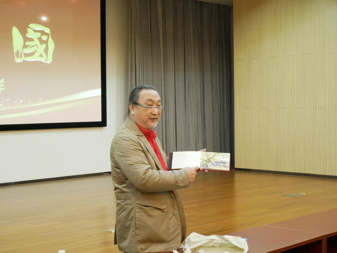 “上善若水。水善利万物而不争,处众人之所恶,故几于道。”水是有生命力而又低调的物质,水彩画以水为媒介,以彩为语义,在水和色彩的相互交融下,世间万物跃然纸上。12月14日,beat365官方网站服装与艺术设计学院教授、博士生导师、全国艺术专业学位研究生教育指导委员会委员冯信群,结合国内外游历写生经历,为同学们带来一场绚丽多彩的水彩艺术盛宴。 冯信群教授从水彩之美、水彩之趣、水彩之意三个方面对水彩艺术进行了阐述。他首先介绍了水彩画的发展起源,水彩画源于欧洲,盛于英国,是一门古老又年轻的艺术,水彩在中国的引入与发展对近代美术的价值观、审美观、方法论产生重要影响,与中国画传统用笔、气韵和意境相融合,蕴含着丰富的中国文化艺术精神,彰显中国气派。 冯信群教授结合自己在长征路、丝绸之路和尼泊尔、土耳其、意大利等国内外地区游历写生时的创作,将一幅幅水彩画背后蕴藏的生动故事娓娓道来。艺术来源于生活,冯老师围绕“艺术融入乡村”话题,生动讲述今年国庆期间在江西创作写生经历,用水彩展现乡间山水风景,将水彩与陶瓷相融合,实现水彩艺术的再创造,分享自己水彩创作的乐趣。 在交流互动环节,面对同学们的提问,冯教授细心解答,指出水彩绘画创作过程中要懂得取舍,我们的生活也是一样,既要做得了加法,也能做得了减法。他还向同学们展示了自己随身携带的创作工具,一盒颜料、一副画笔、一本画本便能随时随地记录美好。冯教授的讲授,让同学们经历了一次水与色的视觉游历,其深厚功底及表现技法博得现场阵阵掌声。 摄影:刘盼盼 撰写:金吉儿 |