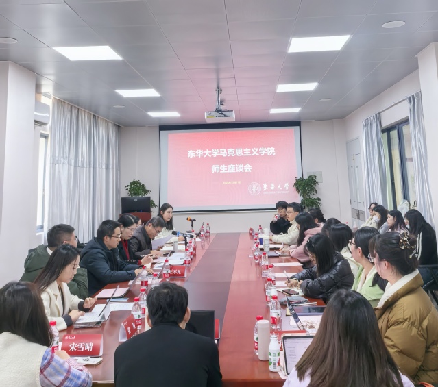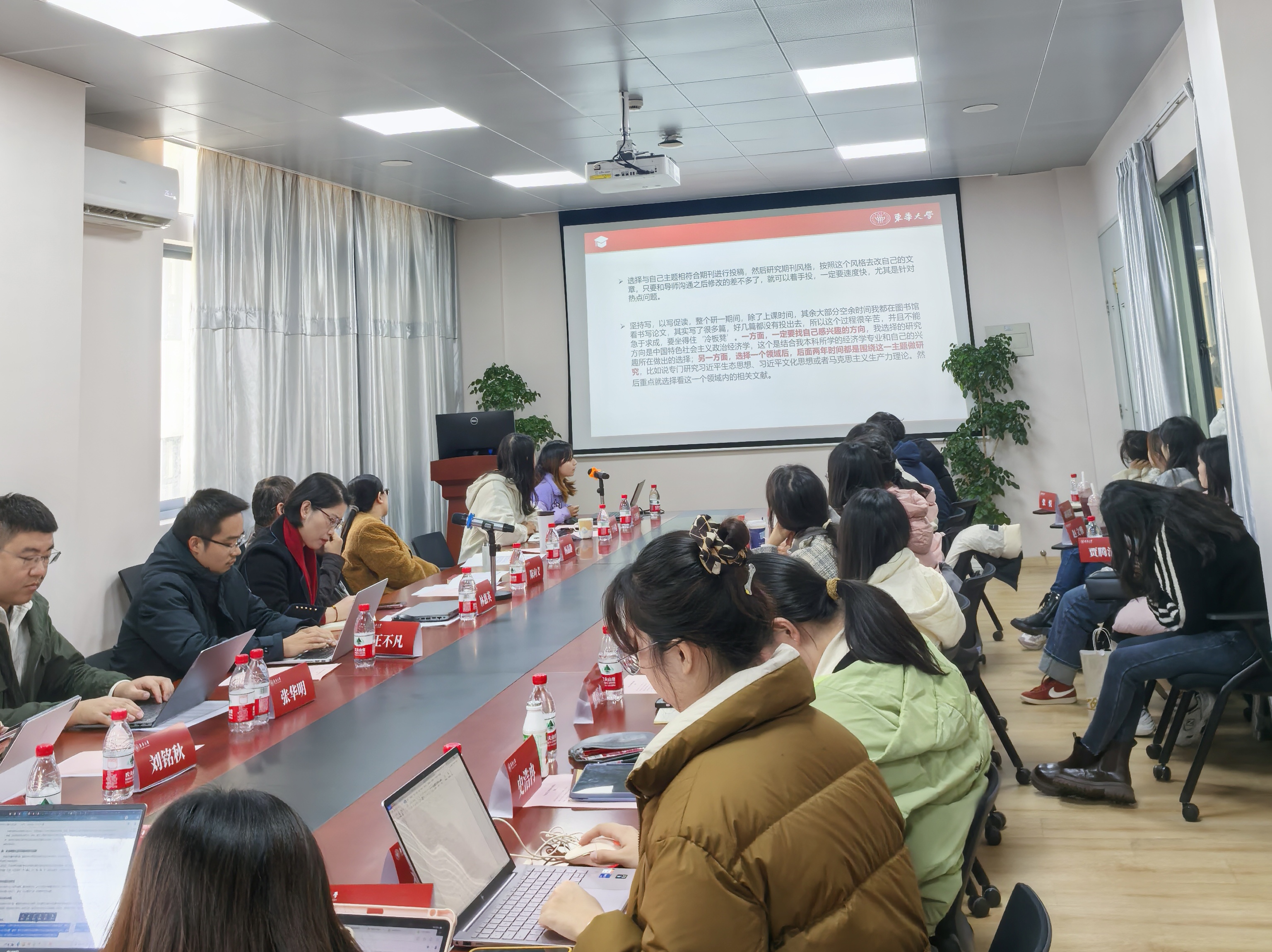 12月17日下午,beat365官方网站师生座谈会在1号学院楼424会议室举行。学院党委书记林惠英,副院长陈向义、王不凡,学院办公室副主任、研究生教学秘书杨晶静,青年教师、兼职辅导员张华明、刘铭秋,2023级研究生代表王诗蓉、张颖以及马理24硕全体学生参加了本次座谈会,会议由辅导员于小越主持。
