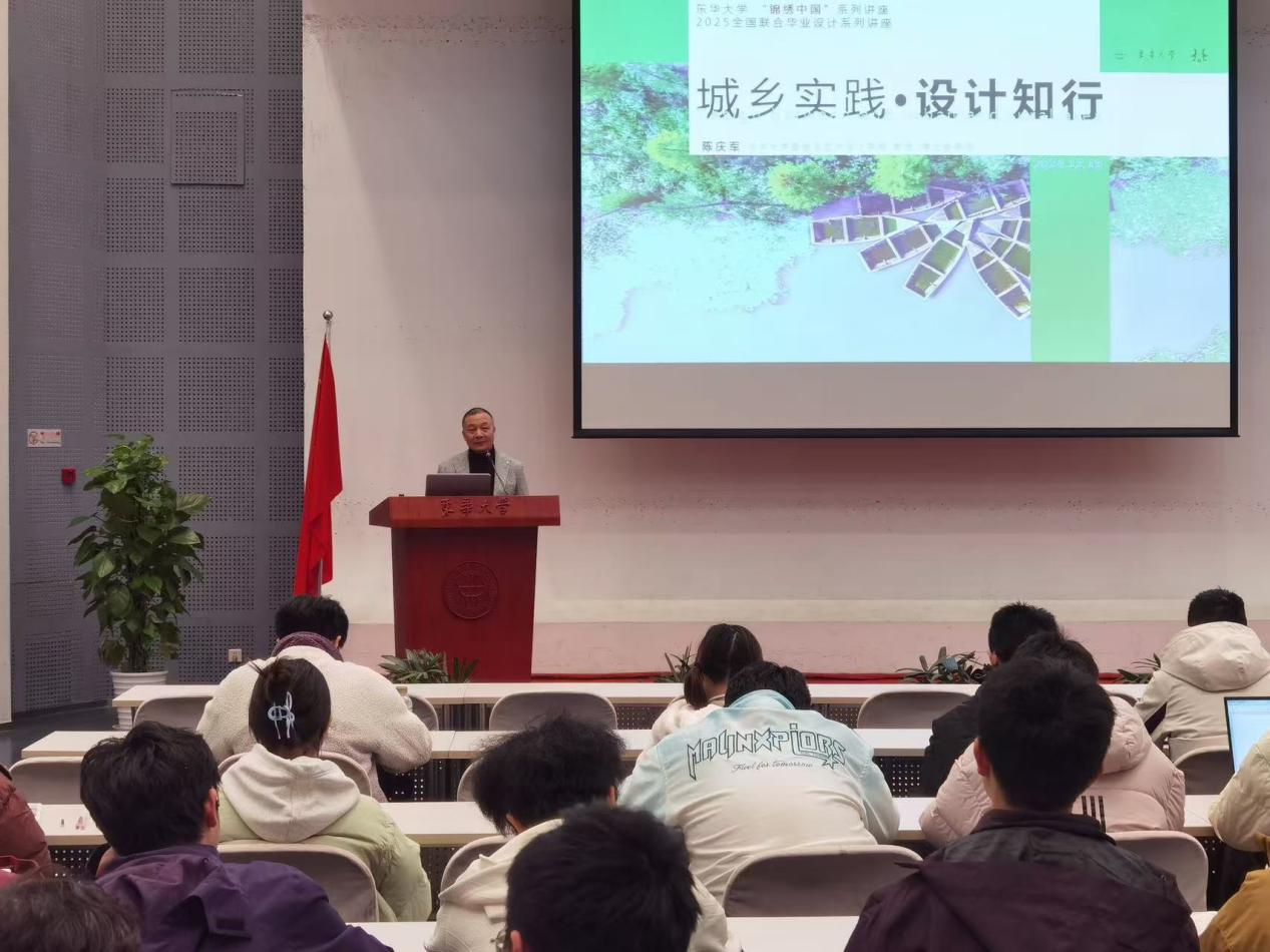 城乡发展实践,设计何为?12月19日,beat365官方网站服装与艺术设计学院教授、博士生导师,全国联合毕业设计发起人陈庆军以“城乡实践·设计知行”为题讲授本期《锦绣中国》课程,向同学们生动讲述了他带领学生将“论文写在大地,设计做在城乡”的精彩故事。
