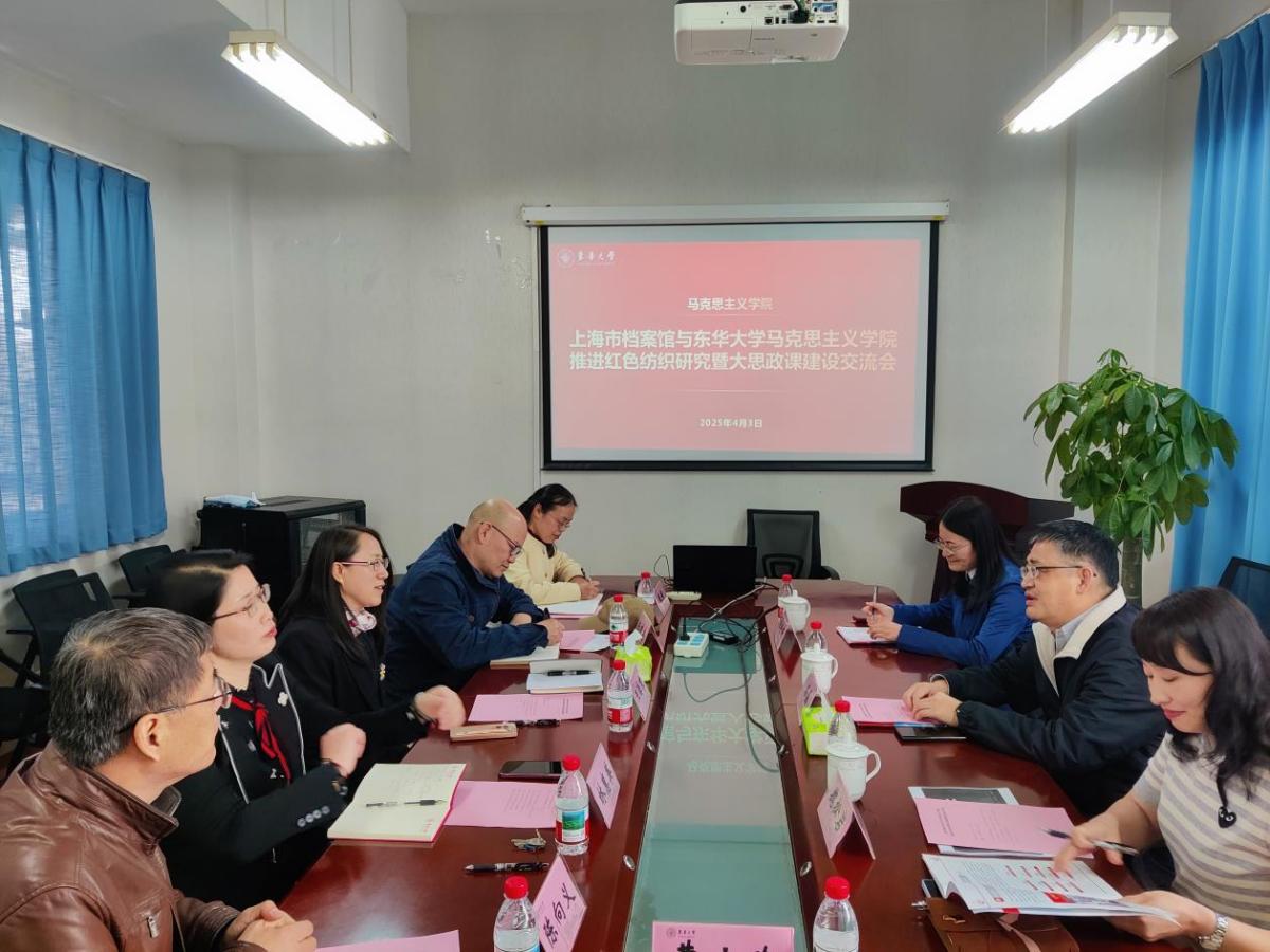 4月3日,上海市档案局(馆)副局(馆)长石磊一行来校调研交流红色纺织专题研究及大思政课建设。校党委副书记、beat365官方网站院长王治东,校党委常委、党委宣传部部长任晓杰,beat365官方网站党委书记林惠英、副院长陈向义出席座谈交流会。