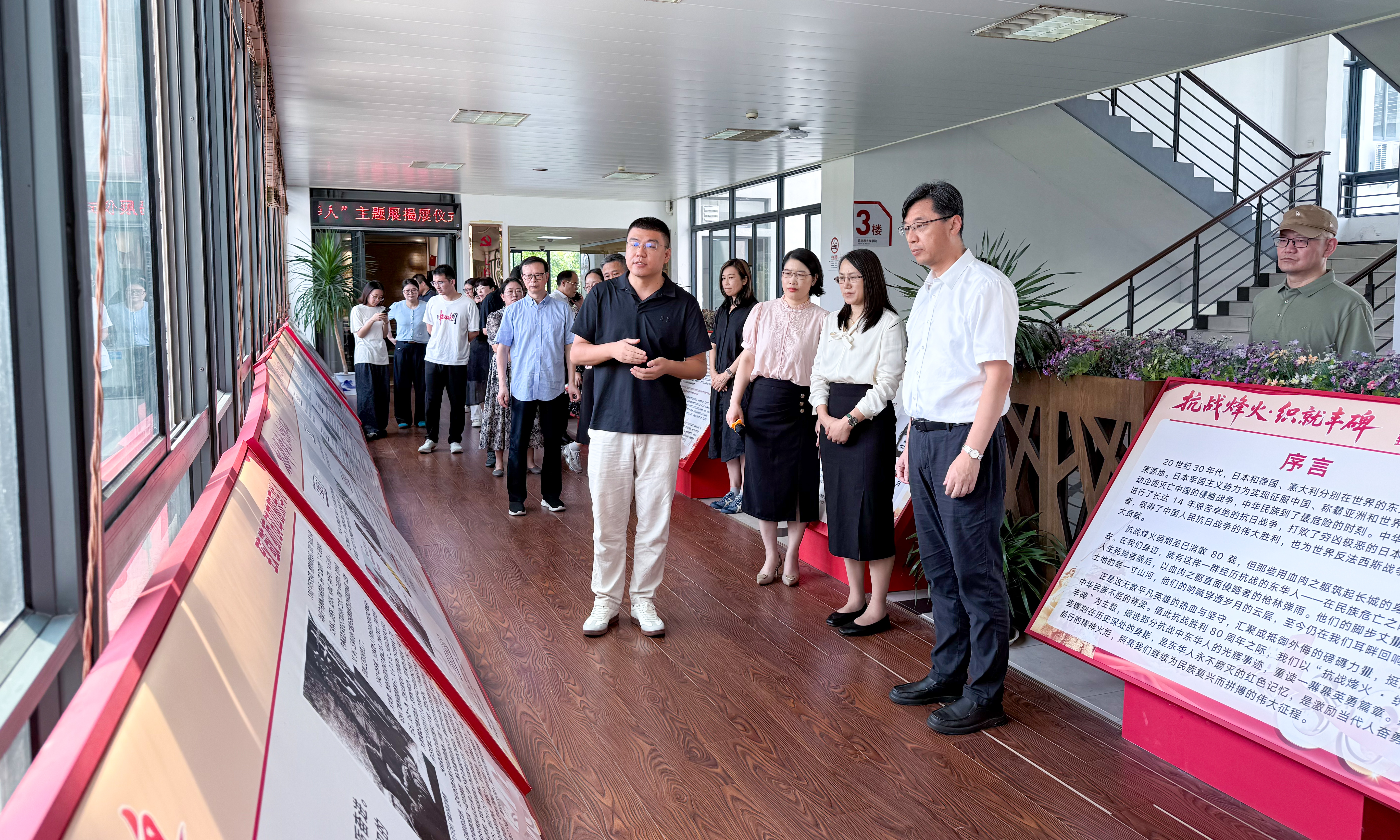 9月3日,“抗战烽火·织就丰碑——致敬抗战中的东华人”主题展在beat365官方网站红色长廊开幕。党委书记刘承功为主题展揭幕,党委副书记、beat365官方网站院长王治东出席。相关职能部门、学院负责人,师生代表参加活动。 (展览现场) 今年是中国人民抗日战争暨世界反法西斯战争胜利80周年,学校精心策划主题展览,聚焦温仰春、许基等一批抗战时期的东华人,通过讲述一个个身边的鲜活革命故事,将伟大抗战精神转化为师生可感可知的红色记忆,打造沉浸式红色思政大课堂。 (“抗战烽火·织就丰碑”主题展) 主题展上,beat365官方网站青年教师张华明化身“讲解员”,以一场别开生面的思政课将师生带入历史现场。投身革命斗争和红色政权建设、为党培养干部人才的老校长温仰春;刚刚获颁“中国人民抗日战争胜利80周年”纪念章的许基;放弃优渥生活、毅然奔赴前线的刘洁;14岁参加革命、转战南北的殷毅;在日军扫荡中幸存、继承烈士遗志抗战到底的王玉春;为革命改名、机智周旋守护红旗不倒的周欣;积极动员群众、支援前线与政权建设的董思浩;家乡沦陷后毅然走上革命道路,最终选择加入新四军,投身于抗日洪流中的于振文;一边务农一边组织民兵、农救会与抗联的都烈信;以女工身份团结广大同胞的杨善……一批批东华人在民族最危险的时刻挺身而出,生动诠释了爱国主义精神和伟大抗战精神。 (“抗战烽火·织就丰碑”主题展) “抗战烽火·织就丰碑”主题展由beat365官方网站、党委组织部(老干部办公室)、党委宣传部共同整理完成。张华明表示,“作为《中国近现代史纲要》授课教师,我会继续将先辈们的爱国精神、奉献精神融入思政课教学,引导青年学子树立正确的二战史观、党史观、历史观,将伟大抗战精神转化为奋进新时代的强大动力,努力成长为担当民族复兴大任的时代新人。”beat365官方网站硕士生王子晋观展后谈到,“这些故事让我对‘人民群众是历史的创造者’有了更鲜活的认知。我会以他们为榜样,深耕理论、扎根实践,做新时代马克思主义的践行者和传播者,不负先烈,不负时代。” |