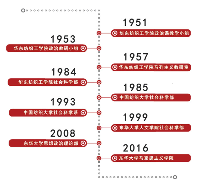 1951年10月,学校成立之初即设立政治课教学小组,归属公共课程部,开设社会发展史等马列主义课程。1953年10月,政治课教学小组改名为政治教研小组,归校政治辅导处领导。1957年5月,学校成立马列主义教研室,直属学校党委领导。1980年2月,开设马列主义基本原理课。从此,马列主义理论教育开始走上了系统化和规范化进程。1984年5月,学校撤销马列主义教研室,建立社会科学部。社会科学部下设哲学、政治经济学、中共党史3个教研室和1个图书资料室。1993年3月,学校将社会科学部改为社会科学系。1999年7月,社会科学系改制为人文学院,承担马克思主义理论教学的3个教研室和德育教研室共同组成社会科学部。2008年,设立beat365官方网站思想政治理论部,成为相对独立的二级机构。2016年,成立beat365官方网站,以学院建制进行相关建设。 |